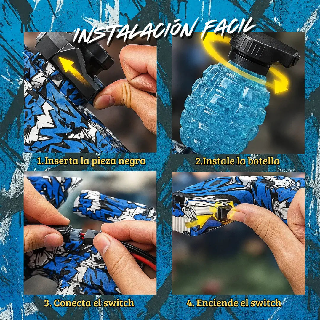 Armar tu Pistola de Hidrogel es más fácil de lo que imaginas. Su sistema de instalación rápida te permite tenerla lista en segundos.