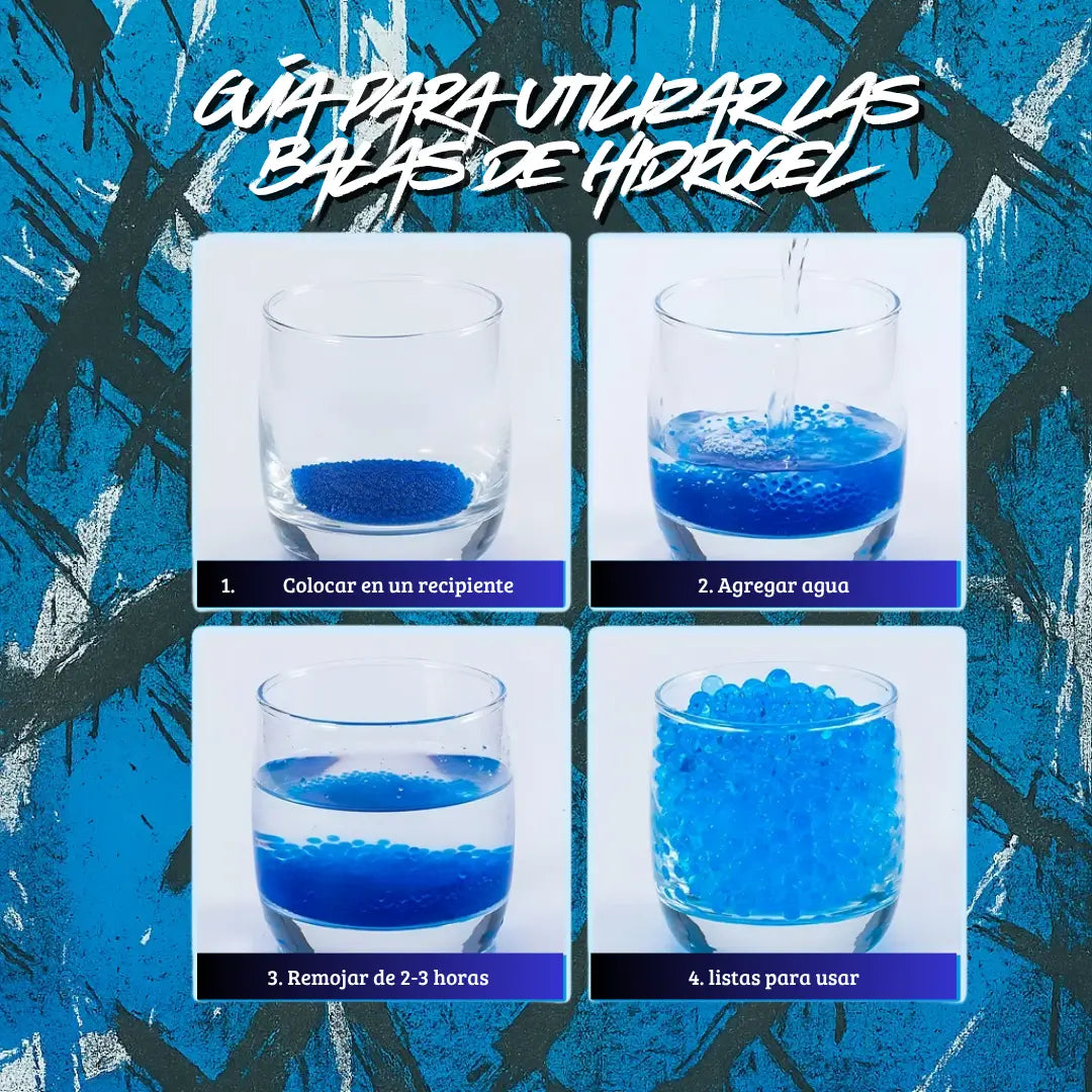 🚀 Dispara balas de hidrogel con precisión y potencia.
